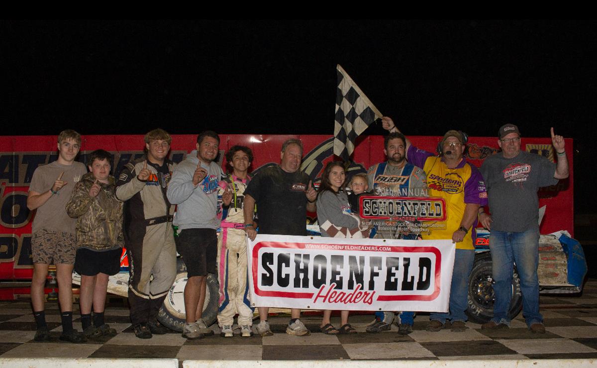Joe Payne is the IMCA Stock Car Points Champion, while the feature event was won by Jeff Abbey. Abbey was also the winner of the SCHOENFELD HEADERS MID-AMERICA IMCA STOCK CAR CHAMPIONSHIP event on Saturday night.